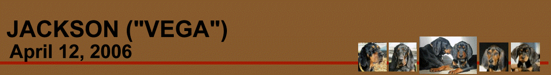 In October of 2005 I had adopted a black and tan you called Vega through your rescue. Well, Jackson has been a great dog. He was my best friend, I loved him more than life itself. Tuesday he got hit by a car. Thank God I found him, and the only thing wrong was that his leg was broken. I took him to the ER vet, and they said he would need surgery. The next day I took off work, and picked him up and took him to my vet, and he said that in 25 years of being a vet he has never seen a break like this. He referred me to a few people, and all day yesterday I was driving around trying to get him better. All the doctors could not guarantee anything, and being a coonhound I did not want that. They said if infected they would remove his leg, and if not infected if will be in pain for a long time. I had to make the decision that I think I might regret later, but yesterday, Aoril 12th, I brought him home to be in the house one last time, and to say bye to his brother, (my other dog Otto), and I took him to be put to sleep. He hung on for so long looking at me, and I think if he could talk he would be saying thank you. He died in my lap 10 minutes later. I took him home and found a good spot in my backyard for him, I know that is where he would have liked to be so that where he is now at home with me. I'm going to miss him, and I would like you to put this on your website. My dog Jackson was the best dog in my opinion, and no dog could ever replace him, but he is not in pain anymore, and that puts me at rest. Thank you for doing what you do , and maybe when I'm ready for another one I will give you a call, but for now I just want him to be remembered.