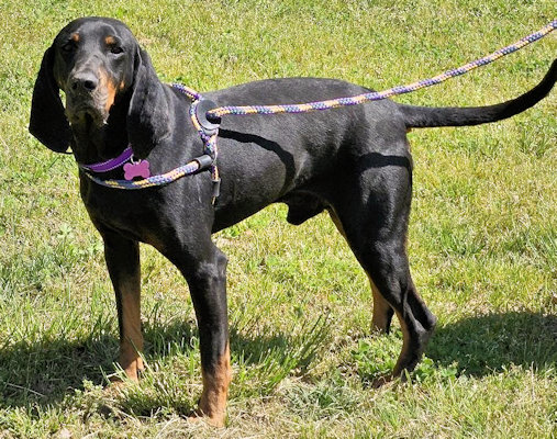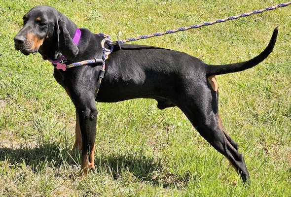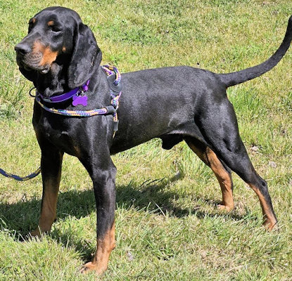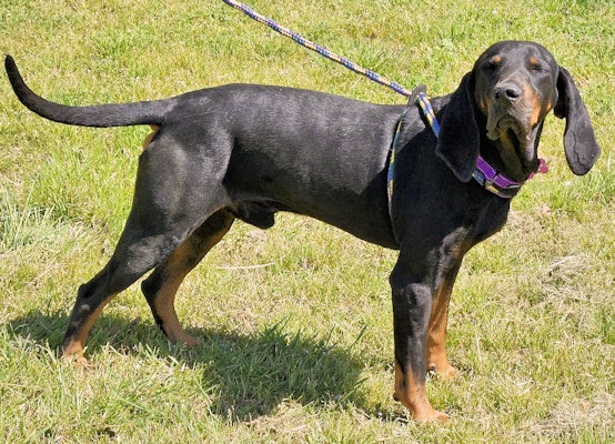 This handsome 6 year old Black and Tan Coonhound has that great combo of looks, personality and a nice energy level. In good weight at 50 lbs, Cyrus loves a good game of chase and wrestle with his canine friends, but he also has a more relaxed side, too. He is a very nice car riding companion and will often place his head on the driver's shoulder to cuddle and watch the scenery. He will wait to be let outside to do his business. Cyrus gets along well with other dogs, but NO cats or chickens, please. He loves human attention more than anything and would be fine with or without another dog in his home. Cyrus is waiting in northwest Georgia.