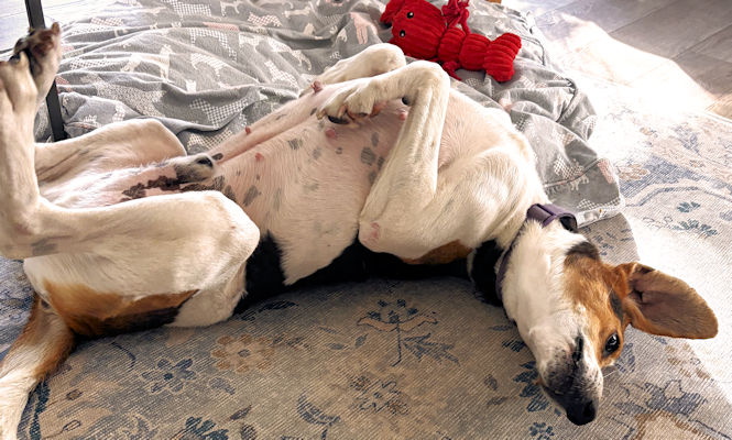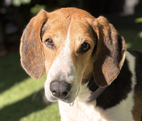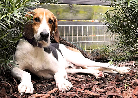 Griddle is an 8 year old Treeing Walker Coonhound boy waiting on St. Simons Island for a new home. He has discovered the comforts of a warm bed and cheesy snacks. Griddle is still shy with people but every day he grows a little braver. In the mornings, he comes in for extra ear rubs and even a belly rub. He's looking for a quiet home with a fenced yard so that he can bask in the sunshine. Griddle is great with other dogs but has not been not cat tested. He weighs about 70 pounds and he is cratetrained. Griddle also walks well on a leash and is beginning to enjoy car rides, too.