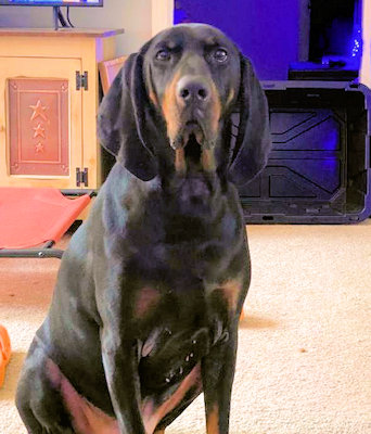 Lincoln is a 4 year old Black and Tan Coonhound boy waiting in Roanoke for a new home. Born on April 28, 2022, he has been a housepet for his entire life. He is a sweet, docile cuddlebug that will do anything for a treat. Lincoln has lived with a small dog and a cat and has never shown any food aggression. He is housetrained and will go to the door when he needs to go outside. He is also cratetrained and leashtrained. Lincoln currently weighs 80 lbs but could stand to lose weight. He is a very quiet coonie unless someone is knocking on the door. He can get carsick on curvy roads with lots of switchbacks, but otherwise is fine.