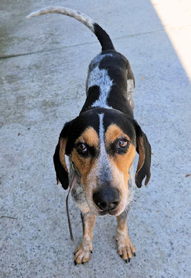 Mr. Diego Blue is a goofy gentleman waiting in the Huntsville area for a new home after wandering up to his soon-to-be foster home. This stunning 2 year old Bluetick Coonhound with perfect eyeliner is as sweet as they come. Weighing about 60 lbs, he is the perfect size for big adventures and cozy couch cuddles alike. Whether it is riding shotgun on a car ride (his favorite spot), romping around outside, or curling up for snuggles, he is happiest when he is with his people and dog friends. This boy has the playful, goofy and affectionate personality that coonhound lovers can truly appreciate. He is very social and friendly with people; his motto is "the more, the merrier." Because of his energy level and size, he is best suited for a home with older children.