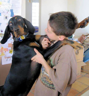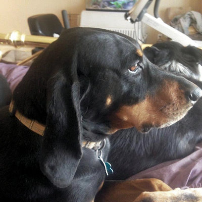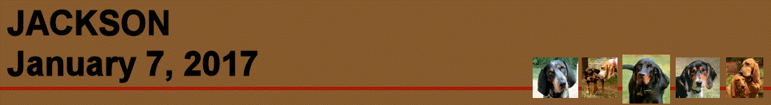 On January 7, 2017, our beloved 11 year Black and Tan Coonhound, Jackson aka Jackson Browne, Gentleman Jack, Black Jack, Cracker Jack, Wacky Jack passed at home at 8:30 a.m. MST. He was a handsome, gentle and sweet dog with a great hound bay. He was very much an unique personality: he loved cats, bayed at "the angels" barking at the sky for hours on end, loved his cookies, rang the bells to go out, and was a homebody and stubborn as heck. He was a rescue from Georgia by way of ABTCR and came with us from CT to NM.