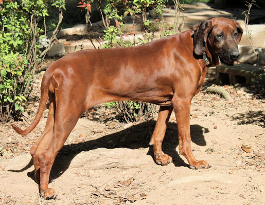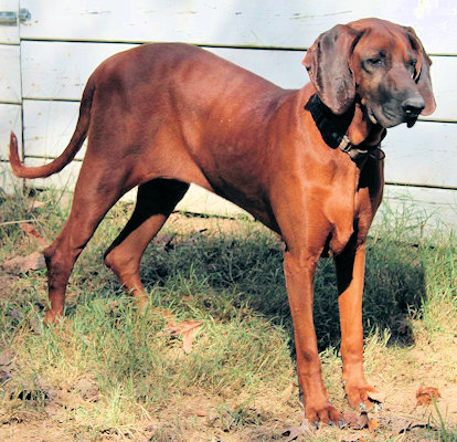 This deep, dark chestnut 5 year old Redbone girl has it all: great looks, a sweet and loving personality, and a strong desire to please. Saffron's previous owner loved her from puppyhood, but he had to give her up due to health reasons. Now safe in her northwest Georgia foster home, Saffron romps with the other hounds as best friends and is so forgiving and patient with the pup in her foster home. This girl loves toys and will play endlessly but is also able to settle in her crate while her foster parents are away. In good weight at 65 lbs, Saffron is reliably housetrained, pretty good on lead and will "sit" and "shake" upon request. She could be a little too much for toddlers, but older kids would be great. You'll too be mad about Saffron if you meet her!