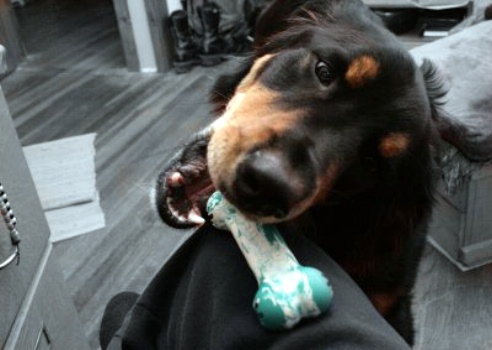 Bruno is one year old! We've come a long way with our little man. It started as a skin rash. A suspected food allergy caused us to change to a limited ingredient diet. All was well until November. Bruno was so sick. The vet suspected that Bruno had swallowed a foreign object due to a large mass found during an xray. Once surgery was completed they found no object. Bruno's lymph nodes and intestines were so swollen he was not able to keep anything down or pass anything. He was diagnosed with Inflammatory Bowel Disease due to a severe food allergy. L.I.D. was not enough. We have been on the Hills ZD Ultra ever since. No more bones, cow ears, peanut butter kong or the occasional dropped pretzel. But he's a trooper. Although he has not been able to regain the weight he lost while sick. He is hanging right around 76lbs. He is so loving and gentle. He would rather receive hugs and kisses then go for a walk. His brother, the cat has adapted well and the two can now coexist in the same room. In fact, Barnham has claimed Bruno's bed. Bruno doesn't mind, he prefers the couch anyway. This has been a wonderful experience for our family despite his health issues. We couldn't be happier with our 'chunk' & wouldn't trade him for the world. Thank you AB&TCR.